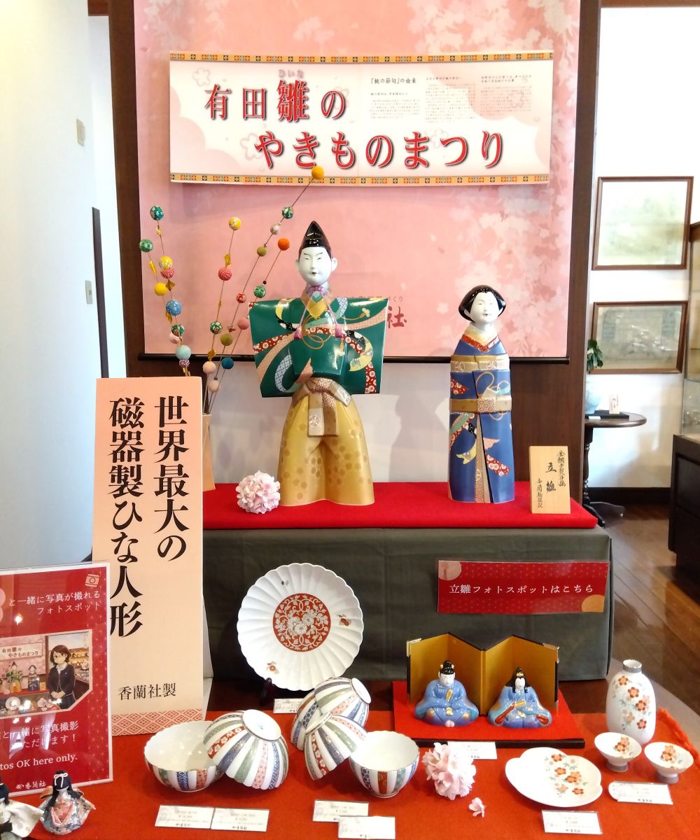 香蘭社では、色あざやかな「世界最大の磁器製立ち雛」の展示や、