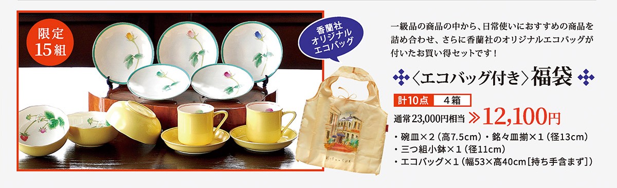 人気の香蘭社オリジナルエコバッグに入った大変お得な福袋です!