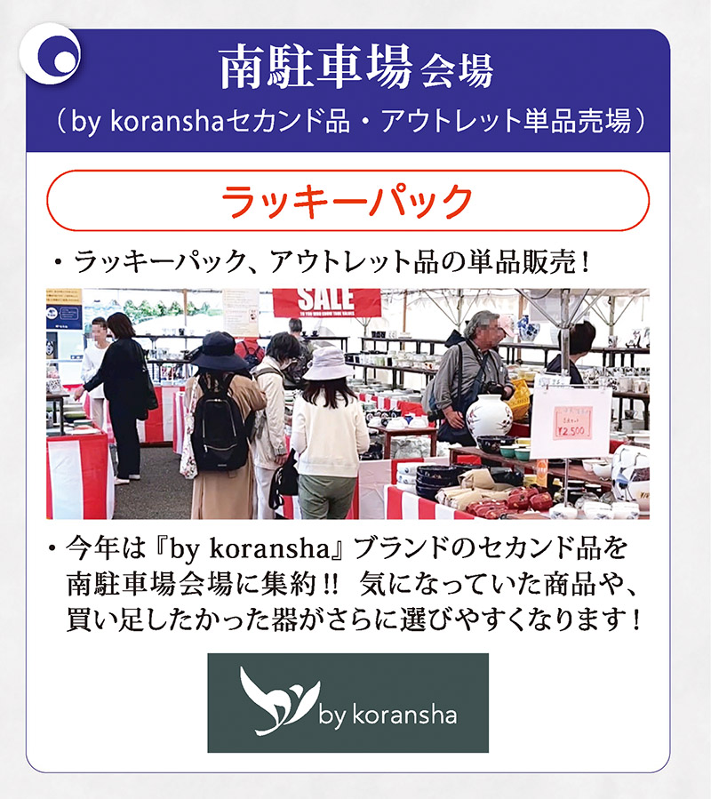 新緑が美しい季節、今年も有田陶器市の開催時期が近づいてまいりました。香蘭社各売場の案内やお買得情報など掲載しています。